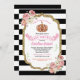 Todo texto é editável. Um convite para chá de fraldas para o tema da abóbora, bonito, com brilho cor-de-rosa e dourado, e listras brancas e pretas. Perfeito para o outono / Halloween / temporada de Ação de Graças Consiga este convite bonito agora!