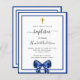 Menino Baptism convite para arco branco azul real