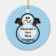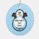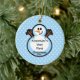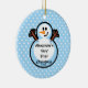 Características dos enfeites de natal do bebê o grupo azul o mais bonito do menino do boneco de neve das primeiras na polca azul & branca pontilhou o fundo! Personalize com sua informação do bebê e data e você são todos ajustam-se para ir! Presente datado maravilhoso da lembrança para Natal do seu bebê o ø.