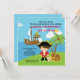 Comece seu partido fora do direito com nosso Ahoy convite de aniversário adorável do pirata dos companheiros que caracteriza o pirata triguenho pequeno o mais bonito em uma praia com uma palmeira, a arca do tesouro e um navio de pirata com uma vela do papagaio no mar no fundo. Aperfeiçoe para um primeiro aniversario ou toda a mudança do aniversário… apenas o aniversário. Inteiramente customizável por você com sua informação. design ©Babystar