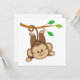Um macaco-menino balançando pela cauda de um galho de uma árvore em T-shirts de macacos balançando, carroças, canecas, cartões, adesivos, bolsas e outros itens perfeitos para macacos pequenos e qualquer um que ame macacos!