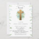 O convite para o Batismo Elegante com uma cruz de ouro requintada rodeada por folhas pintadas à mão em tons verdes claros e azuis de menta. Detalhes da tipografia de scripts escritos à mão moderna. Belo cartão verde de sábio está de volta com folhas decorativas e buquê foliar central maravilhoso com o nome de sua filha/filho. A cor da placa traseira pode ser alterada selecionando personalizar. Convite com seção para detalhes de "Cerimônia" e "Recepção". Excelente ao estilo Unisex para rapazes e raparigas. Design com variedade de bananas, palma, folhas de samambaia. Parte da nossa "Unisex Elegant Greenery Religerian Event Collection" com uma variedade de produtos coordenadores.
