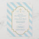 Um convite azul e branco listrado com o convite à Primeira Comunhão de Ouro falso feito profissionalmente pela Victoria of VG Invites. Para ver mais designs de excelentes visite www.zazzle.com/vginvites