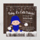 Querida, está frio fora do chá de fraldas convite com um bebê adorável vestindo um chapéu azul escuro de neve em uma madeira rústica e fundo de neve. Esses garotos bonitos de inverno, os convites para chuveiros de bebês em flocos de neve são facilmente personalizados para seu evento simplesmente adicionando seus detalhes.