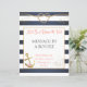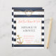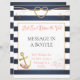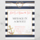 A mensagem de Chá de panela náutico num sinal de garrafa é desenhada com um coração de corda, uma flor, um brilho de ouro e uma âncora.