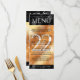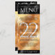 Adicione sofisticação a 22º aniversário de casamento em cobre com este menu de janto, que contém letras elegantes e confetti hexagonal em folha de cobre e fundo preto. Personalize com nomes de casal, datas de casamento, detalhes do local, itens de menu e mensagens de parabéns. Design © W.H. Sim. Mais informações em zazzle.com/expressionsoccasions
