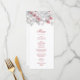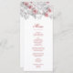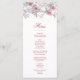 This classic wedding menu card features pink 3D roses and an elegant handwritten script on a white background. Customize it with bride and groom names on the backside.