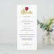 Um estilo listrado elegante com fundo vermelho rubi e cor dourada. As palavras no cartão diziam "A Ruby Do" para um 40º aniversário de casamento. O Menu personalizado tem as informações facilmente alteradas para si próprio. O na moda design é de uma variedade de papéis de carta personalizados dos Designs Finos de Chessie.