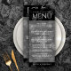 Adicione sofisticação às celebrações do 4º aniversário de casamento de linen com este menu de janto, que contém uma elegante inscrição e um confete hexagonal em linhagens de cinza e fundos pretos. Personalize com nomes de casal, datas de casamento, detalhes do local, itens de menu e mensagens de parabéns. Design © W.H. Sim. Mais informações em zazzle.com/expressionsoccasions