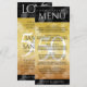 Adicione sofisticação às comemorações do aniversário de 50 ouros com este menu de janto, que contém letras elegantes e confetti hexagonal em folha de ouro e fundo preto. Personalize com nomes de casal, datas de casamento, detalhes do local, itens de menu e mensagens de parabéns. Design © W.H. Sim. Mais informações em zazzle.com/expressionsoccasions
