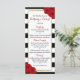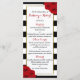 A coleção de luxo moderna de chic apresenta um histórico clássico de listras brancas e pretas, acentuado com belas rosas vermelhas de rubi e uma falso estrutura de folha de ouro. Esses cartões de menu são fáceis de personalizar e serão o acessório perfeito para qualquer casamento, chá de panela, festa de aniversário, celebração de noivados ou qualquer outra ocasião especial.