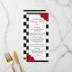 A coleção de luxo moderna de chic apresenta um histórico clássico de listras brancas e pretas, acentuado com belas rosas vermelhas de rubi e uma falso moldura de folha de prata. Esses cartões de menu são fáceis de personalizar e serão o acessório perfeito para qualquer casamento, chá de panela, festa de aniversário, celebração de noivados ou qualquer outra ocasião especial.
