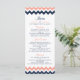 Simples mas elegante, a coleção moderna de casamentos de chevron é um design impressionante que apresenta um adorável impressão zig-zag de cor rosa, marinho e branca, o que é perfeito para qualquer celebração moderna de casamento. Estes cartões de menu podem ser personalizados para a sua ocasião especial e fariam o menu perfeito para o seu casamento, chá de panela, festa de noivado, festa de aniversário e muitas outras ocasiões especiais. Adicione seu texto personalizado a este design usando as caixas "Editar este modelo design" no lado direito do item, ou clique no botão azul "Personalizar" para organizar o texto, alterar as fontes e cores e também adicionar informações ou imagens adicionais a este design.