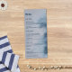 Elementos: elementos de abstrato de aquarela, tipo minimalista limpo. Cores: azul poeirento, azul marinho, cinzas, ardósia, aço, pepter, índigo. Temas: moderno, mínimo, minimalista, abstrato, humorístico, caprichoso, outono, inverno, sofisticado, contemporâneo, limpo, simples e romântico. Coleção: Coleção de Casamentos de Coloração de Água da Cinza Azul Moderna. Tipo de produto: Menu