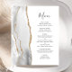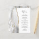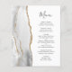 A borda esquerda deste elegante cardápio moderno de casamento apresenta uma cinza e uma aquarela branca aparada com uma falsa brilha dourada. O texto personalizável combina o script de escrita manual de cinzas de carvão e as fontes de impressão em um fundo branco. O verso apresenta uma cinza correspondente e um design de agate dourado.