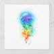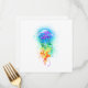 Água-viva grande, iridescente, desenhada artisticamente, brilhante, com longos tentáculos em branco, pintada sobre fundo de aquarela multicolorido. Água-viva arco-íris.