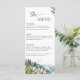 Elevem sua capa de mesa de casamento com este elegante cartão de cardápio inspirado em italiano, projetado para complementar uma celebração romântica e refinada de destino. Apresentando detalhes costeiros de cor aquosa macia e tipografia de eterno, ele adiciona um toque polido a cada lugar. Seja em guardanapos ou estilhaçados com flores e cartões de lugar, este menu traz um senso de coesão e charme para a sua recepção. Totalmente personalizável com seus nomes, data e seleções de menu.