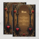 Amor eterno à sombra da escuridão gótica. O quadro do ornamentado, inspirado na arquitetura gótica, consiste em duas majestosas colunas negras adornadas com delicados sotaques dourados. Estas colunas enquadram uma grande abertura arcaica que brilha sobre um fundo castanho quente, fornecendo o contraste perfeito para os elementos escuros. Corações vermelhos deliciosos são parcialmente envoltos em teias finas.