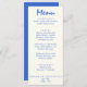 Um menu colorido de janto de casamento amarelo de pêssego. Que apresenta o design de modelo chic de fundo branco leitoso boho vintage e tipografia azul brilhante e menu escrito à mão em azul. E fundo verde brilhante. Perfeito e compatível com toda a suíte.
