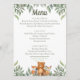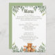 Animais Da Floresta Eucalyptus Greenery Deixam O Menu Chá de fraldas. Este design de alta qualidade é fácil de personalizar para corresponder às cores, estilos e temas do seu chá de fraldas.