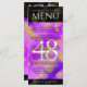 Adicione sofisticação às comemorações de 48 anos de casamento ametista com este menu de janto, que contém uma elegante inscrição e um confete hexagonal dourado sobre fundo roxo e preto ametista. Personalize com nomes de casal, datas de casamento, detalhes do local, itens de menu e mensagens de parabéns. Design © W.H. Sim. Mais informações em zazzle.com/expressionsoccasions