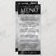 Adicione sofisticação às comemorações do aniversário de 25 prata com este menu de janto, que contém letras elegantes e confete hexagonal em folha prateada e fundo preto. Personalize com nomes de casal, datas de casamento, detalhes do local, itens de menu e mensagens de parabéns. Design © W.H. Sim. Mais informações em zazzle.com/expressionsoccasions
