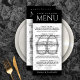 Adicione sofisticação às comemorações de 60 anos de casamento de diamante com este menu de janto, que apresenta uma elegante carta com confete de diamante estilizado em fundos brancos e negros. Personalize com nomes de casal, datas de casamento, detalhes do local, itens de menu e mensagens de parabéns. Design © W.H. Sim. Mais informações em zazzle.com/expressionsoccasions