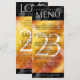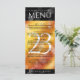 Adicione sofisticação às 23ª comemorações do aniversário do topaz imperial com este menu de janto, que contém uma elegante letra e um confete hexagonal no fundoso fogo laranja-amarelo-vermelho e fundo preto. Personalize com nomes de casal, datas de casamento, detalhes do local, itens de menu e mensagens de parabéns. Design © W.H. Sim. Mais informações em zazzle.com/expressionsoccasions