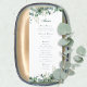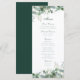 Este cartão de menu apresenta a emerald green watercolor eucalipto e botânicos verdes sage. Personalizar todas as seleções de menu para a sua celebração