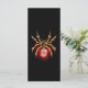 Aranha mecânica, com pá-pá de ouro, engrenagens de latão e uma lâmpada de vidro vermelha sobre fundo preto. Estilo Steampunk.