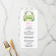 Bonito Menu de casamento com um arco floral e flores roxas cor-de-rosa. Perfeito para um casamento de primavera ou verão. As palavras podem ser alteradas para se adequarem aos seus próprios detalhes ou requisitos