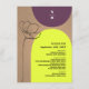 Arcos amarelos neon e de ameixa sobre estoque de papelão inspiraram fundo. Monograma no topo sobre arca de ameixa. Texto preto sobre arco amarelo com flor de arte de linha preta à esquerda.