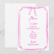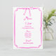 Este elegante modelo de menu de estilo manuscrito apresenta um design desenhado à mão clássico com uma ilustração de arco caprichosa no topo. É apresentado num esquema de cores rosa e branca divertido, perfeito para dar o tom para uma celebração única e feminina.