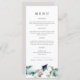 Este menu apresenta elementos do oceano de aquarela incluindo coral e uma raia manta emparelhada com um layout simples e moderno. Este cardápio tropical é a adição perfeita ao seu evento de primavera, verão ou praia de outono.