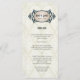 A 1920 parece sempre retornar à cultura popular e um casamento de arte deco é certamente um para ser lembrado. Este cartão de cartolina de cardápio de casamento faz com que a arte decorativa seja popular nos anos 20 para realçar o seu menu de casamento personalizado. Uma cor de creme com um sutil padrão decorativo de diamante faz um fundo impressionante para uma estrutura decorativa de decoração oval, no estilo de decoração, para destacar os nomes dos casais e a data do casamento. Disponível com produtos correspondentes. com.