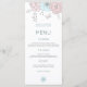 Menu Artsy Modern Florals Borboleta Rosa Casamento Azul