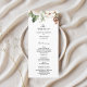 Complete seu conjunto de papelaria de casamento com este Programa de Casamento Botânico de Inverno Elegante. Projetado para complementar o tema sazonal, este layout apresenta folhagens pintadas à mão em aquarela, pinhas e flores brancas contra um fundo limpo e moderno.