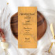 Personalize o bonito Menu de Casamento do Autumn Orange Pumpkins com os detalhes da refeição que você servirá no seu confortável almoço de setembro, outubro ou novembro de outono, janto de recepção de casamentos ou poste o brunch de casamento adicionando a salada ou o primeiro curso, a entrada ou o segundo curso e a sobremesa ou o terceiro curso. Este cardápio nupcial automático personalizado natural apresenta uma fotografia digitalmente melhorada de abóboras laranja.