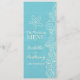 Menu moderno simples frente e verso do comensal da recepção de casamento do estilo das ondas do mar da praia nas matiz do azul do aqua e da cor do Sandy Beach, caracterizando um desenho da estrela do mar e umas ondas de roda. Projetado excepcionalmente por Sarah Trett.