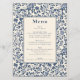 Menu azul e creme de temas botânicos elegantes