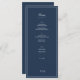 Fundo azul náutico para design simples, mas elegante, baseado na tipografia. rodapé do monograma do casal. Branco sobre azul marinho escuro. Inverte para cor azul sólida. O cartão de menu tem fontes em francês e sans serif com embelezamento de linha de solteiro em "Menu". Um aspecto muito náutico em ambas as cores e na tipografia.