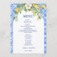 Menu Azulejo Mediterrâneo Azul Limão Boho Casamento Ita