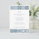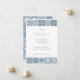 Elevem sua experiência de jantar com cartões de menu que mostram um mosaico de azulejos azuis e cinzas, trazendo a estética mediterrânica para suas mesas de recepção enquanto apresentam seu cardápio delicioso
