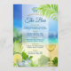 Mostre seu cardápio de bar aberto para o casamento na praia com um design brilhante e alegre que apresenta uma praia ouro com o mar turquesa e o céu azul com luzes bokeh, decorado por um copo claro de vinho com uvas e um copo refrescante de mojito gelado com menta e limão sobre folhas frescas de palmeiras verdes. Perfeito para casamentos de praia, casamentos de destino, casamentos tropicais, casamentos insulares, casamentos de Verão e outros eventos relacionados com o mar. Visite a coleção para ver a suíte inteira.