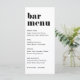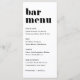 Adicione estes cartões de cartão de menu de bar personalizáveis à sua capa de tabela de eventos. Apresenta uma fotografia retrógrada ousada e uma tipografia simples a preto. Este moderno cartão de bar é perfeito para casamentos, chás de panela, chás de fraldas e muito mais.