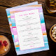 evento abstrato de ondas tropicais tropicais coloridas ou menu de bar de casamento. Perfeito para um casamento mínimo ou moderno de arte de praia tropical ou costeira ou para um evento de jantar de quatro pratos onde você está oferecendo um bar limitado. Edite com suas próprias opções de bebida. Outros itens correspondentes estão disponíveis. Linhas originais da maré tropical de abstrato, de cor rosa, azul-aqua, laranja e branca pintadas com tinta e guache e desenhadas por Sarah Trett para www.mylittleedenweddings.com