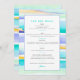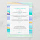 evento abstrato de ondas tropicais tropicais coloridas ou menu de bar de casamento. Perfeito para um casamento mínimo ou moderno de arte de praia tropical ou costeira ou para um evento de jantar de quatro pratos onde você está oferecendo um bar limitado. Edite com suas próprias opções de bebida. Outros itens correspondentes estão disponíveis. Linhas originais da maré tropical de abstrato, de cor aqua, amarela, azul e branca, pintadas com tinta e guache e desenhadas por Sarah Trett para www.mylittleedenweddings.com