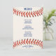 O menu perfeito de recepção de casamento de baseball. Personalize-o com sua data de aniversário de casamento, nomes e lista de refeições. Excelente para fãs ou atletas desportivos.
