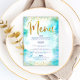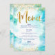 Menu Bat Mitzvah Dourada Folha Leve Turquoise Aquarela