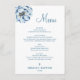 Beige and Blue Floral Baby Boy Baptism Menu com borda azul ao redor do cardápio. Para itens correspondentes, siga o link https://www.zazzle.com/collections/blue_beige_baby_boy_baptism_collection-119431527223990879